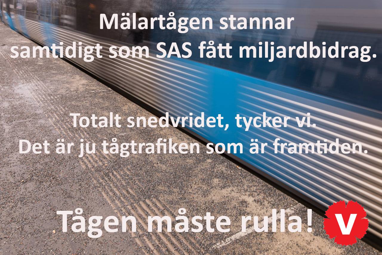 Det är orimligt att tågen i Sörmland och Mälardalen stannar! När SAS får 6,5 miljarder i coronastöd så får SJ inte en krona när de går med förlust på grund av pandemin. Nu drabbar det våra arbetspendlare i regionen! Det är dags för staten att gå in och stödja SJ så att vi kan säkra tågtrafiken och pendlingsmöjligheterna i Sörmland!